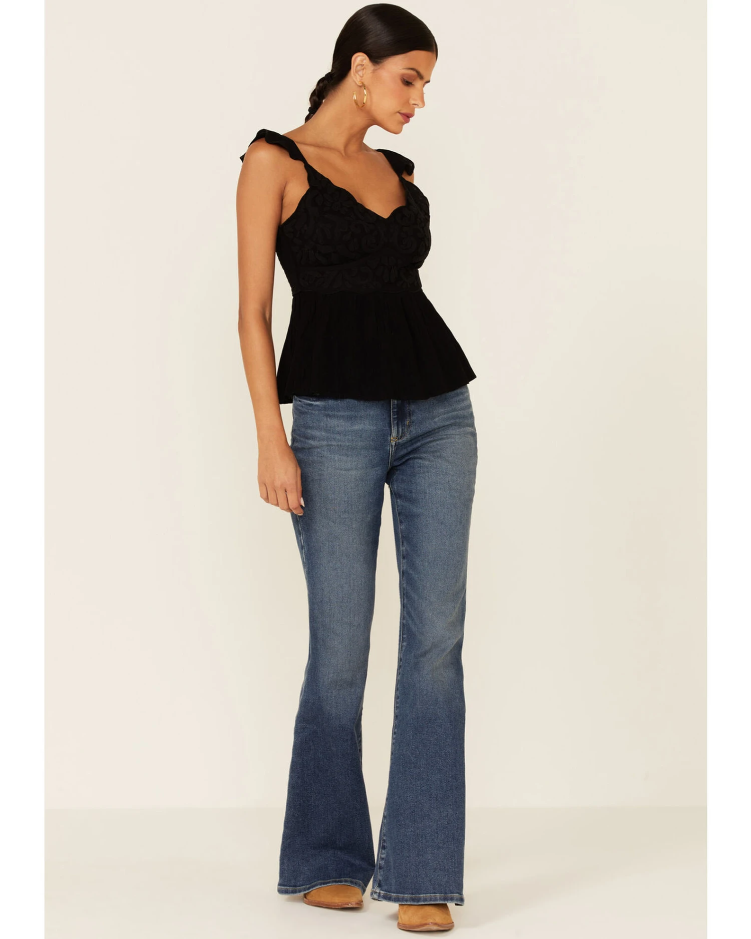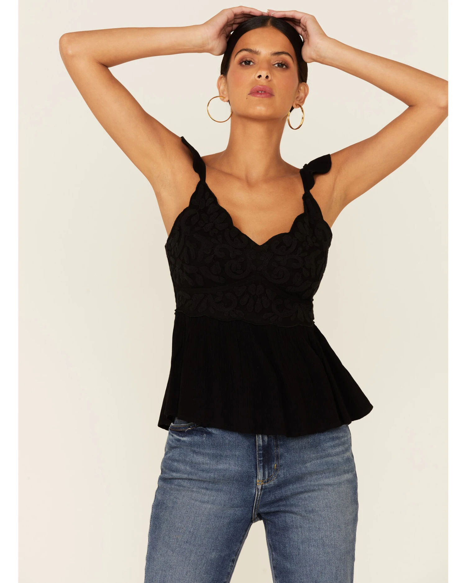 Shyanne Women’s Black Embroidered Flutter Sleeve Tank Top