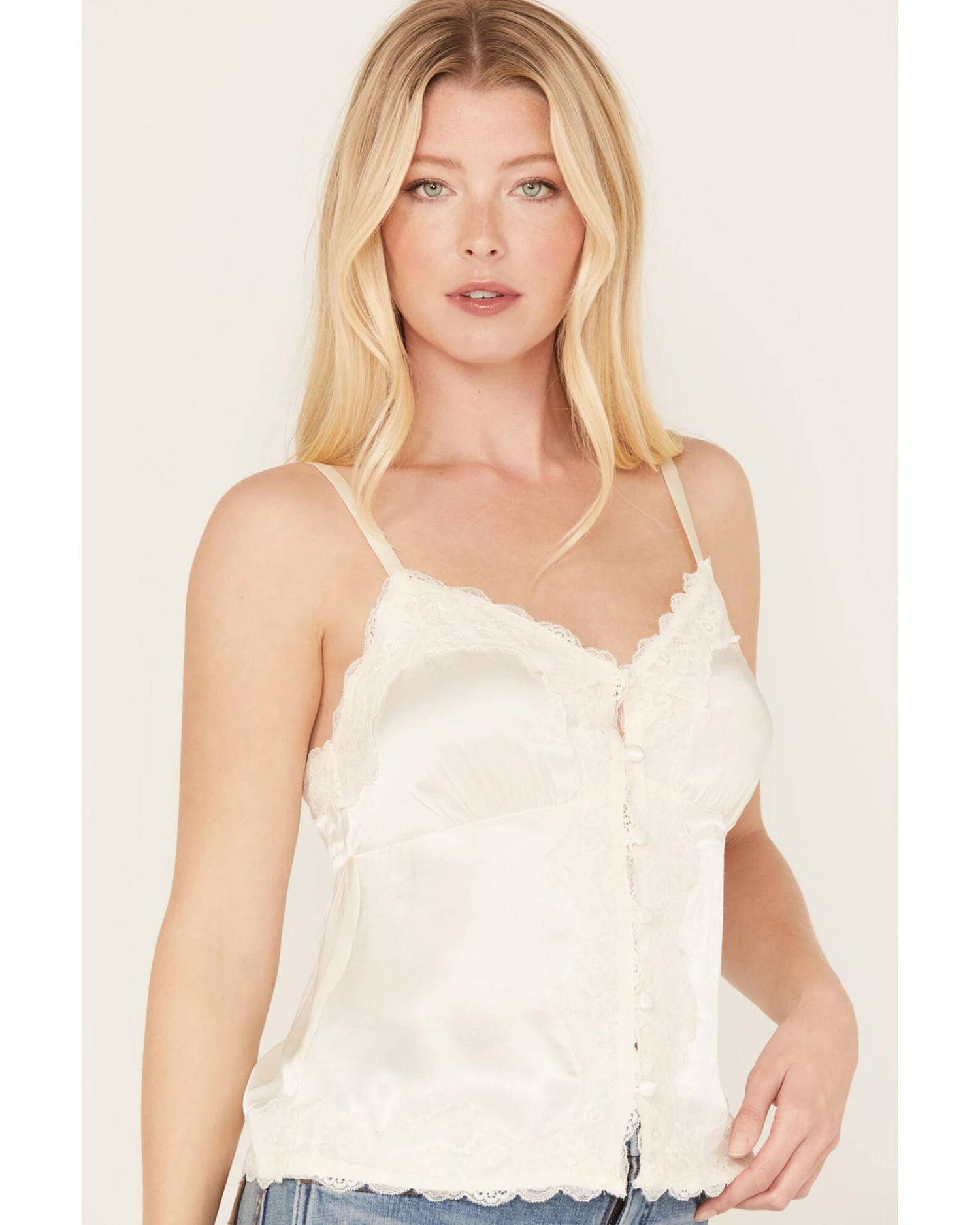 Shyanne Women’s Button Front Lace Trimmed Tank Top