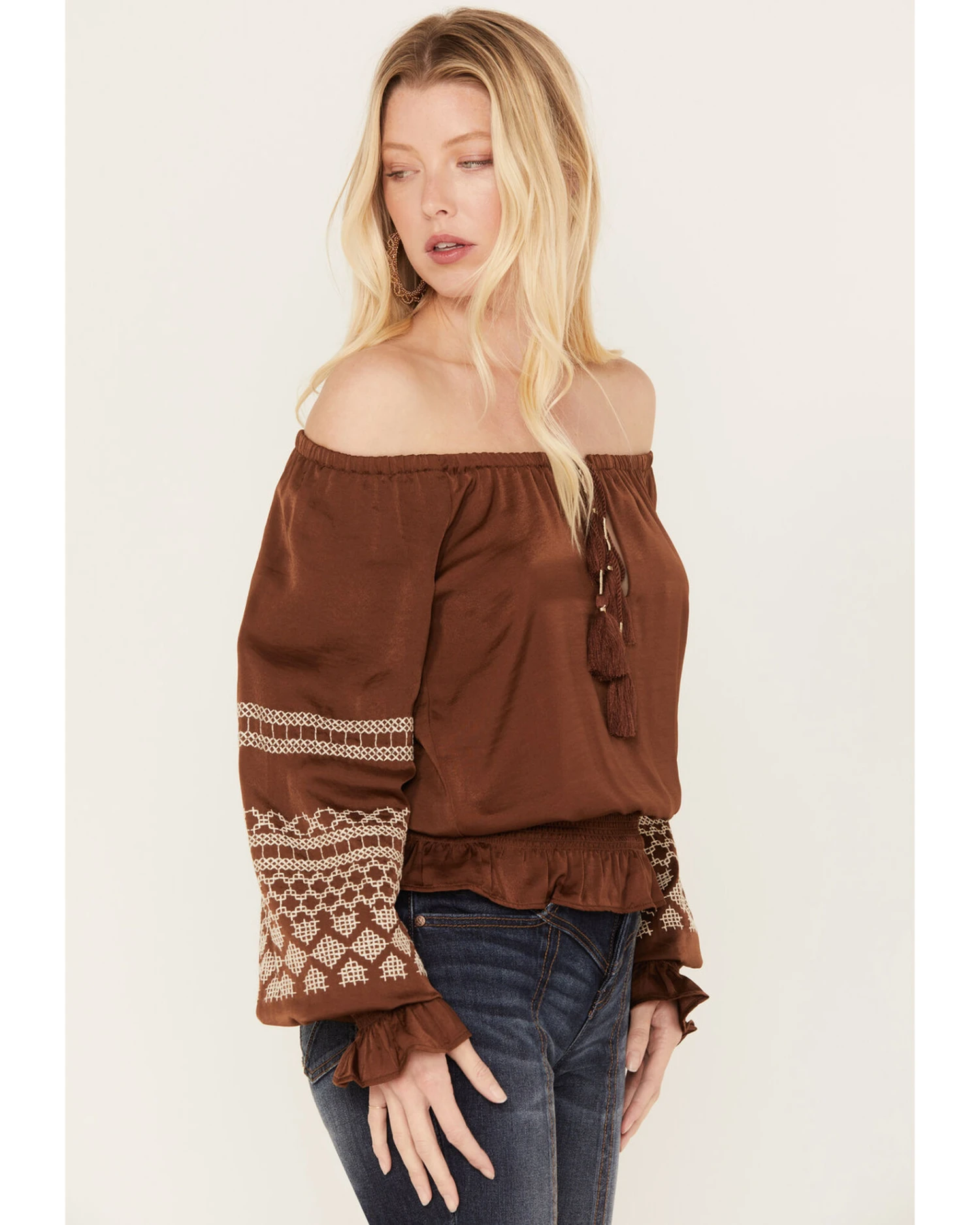 Shyanne Women’s Satin Peasant Embroidered Blouse